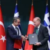 Yunanistan Başbakanı Miçotakis, bugün Ankara'da Cumhurbaşkanı Erdoğan'la görüştü. İki ülke arasında imzalanan anlaşmalar için yapılan imza töreninin ardından Erdoğan ve Miçotakis ortak basın toplantısında konuştu.