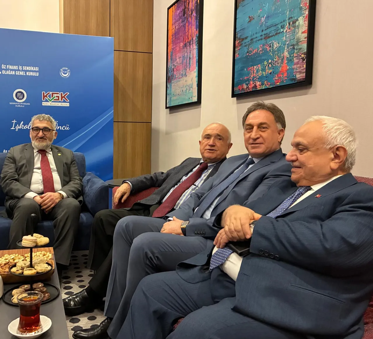 Protokol sıralarına baktığımda; Cemil Çiçek’ten Atilla Koç’a, Nevzat Pakdil’den Sadık Yakut’a, İbrahim Halil Çelik’ten Celal Asiltürk’e, Muhammed Polat’tan Ali Sağlam’a kadar oldukça geniş bir kesim salondaydı. Kongrenin Divan Başkanlığını yapan Nevzat Pakdil, yılların tecrübesi ve nezaketi ile bankacı delegelere tarihin kadim yapraklarından alıntılarla seslendi.